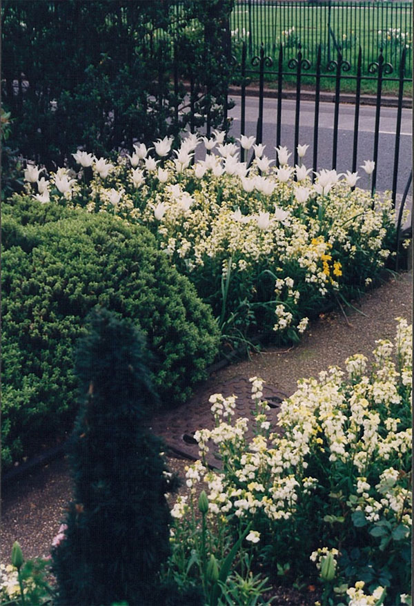 Seasonal plantings for a white garden in Chiswick, London W4
